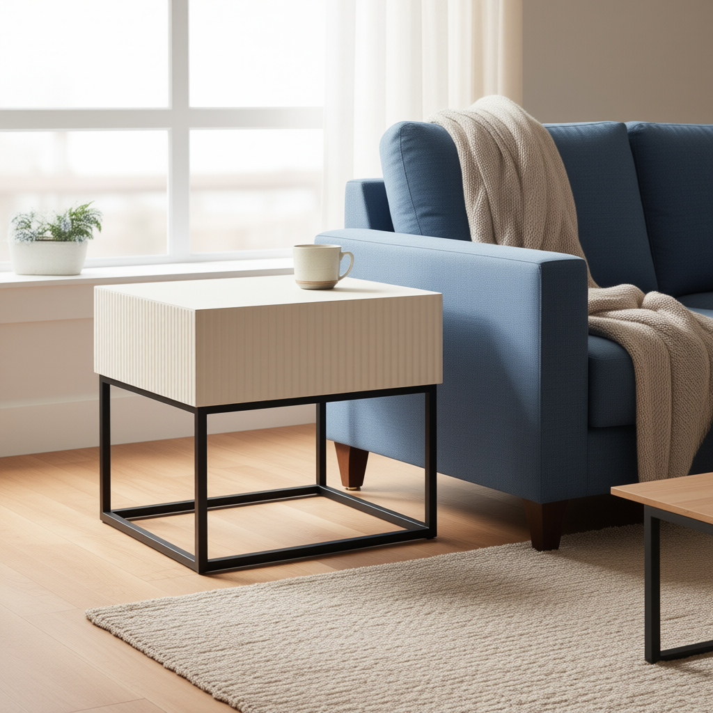 Elevate your living space with our Contemporary Modern Side Table. Crafted from high-quality 19mm (3/4”) MDF, this table boasts a sleek and minimalist design, perfect for adding a touch of sophistication to any room. Featuring a unique textured front and a convenient GTV Push-to-Open mechanism, this side table offers both style and functionality. Its compact size makes it ideal for use in living rooms, bedrooms, or home offices.